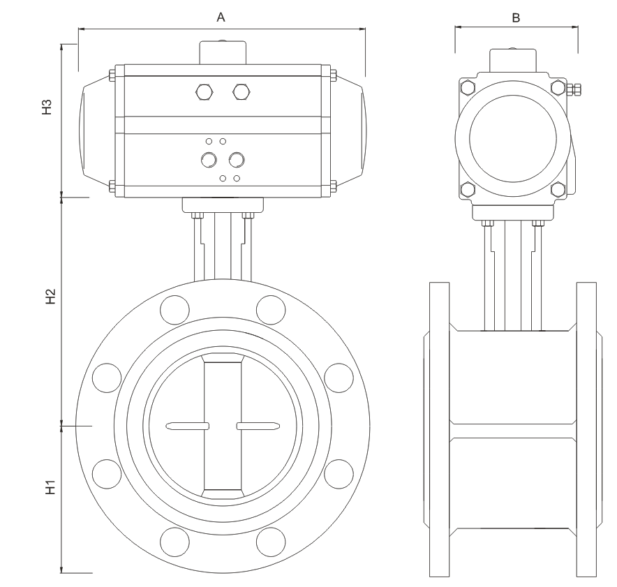 氣動蝶閥是以壓縮空氣為動力(正常情況下供氣壓力為0.4~0.6MPa),通過活塞齒條與齒輪的機械傳動, |
